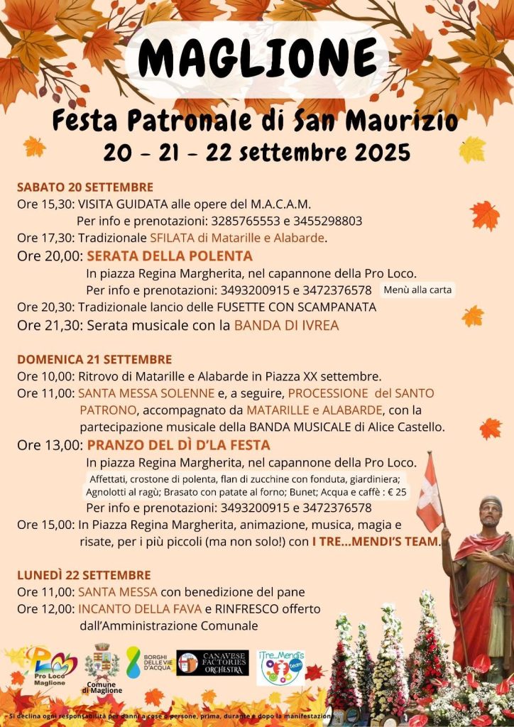 MAGLIONE. Dal 20 al 22 settembre “Festa patronale di San Maurizio”.
