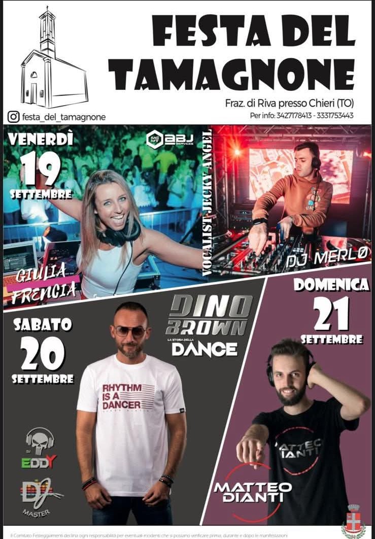 RIVA PRESSO CHIERI. Fraz. TAMAGNONE. Dal 19 al 21 settembre “FESTA DEL TAMAGNONE”.
