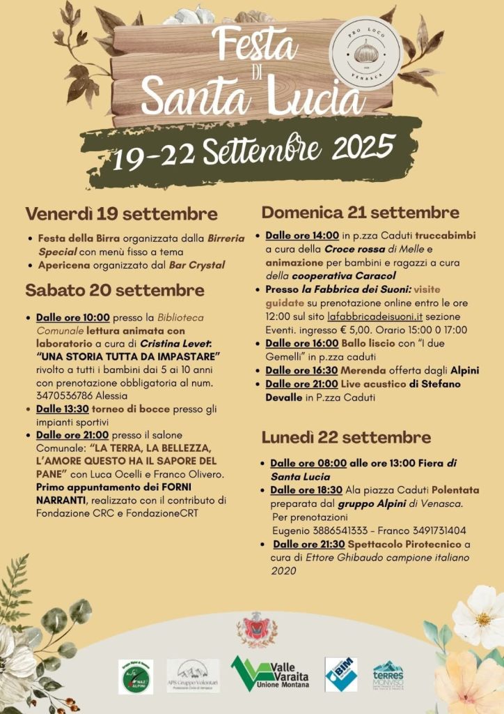 VENASCA. Dal 19 al 22 settembre ” Festa di Santa LUCIA”.