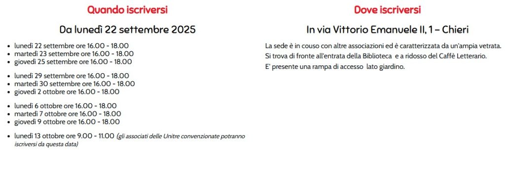 Si aprono lunedì 22 settembre le iscrizioni per l’anno accademico 2025-2026 dell’Università delle Tre età di Chieri.