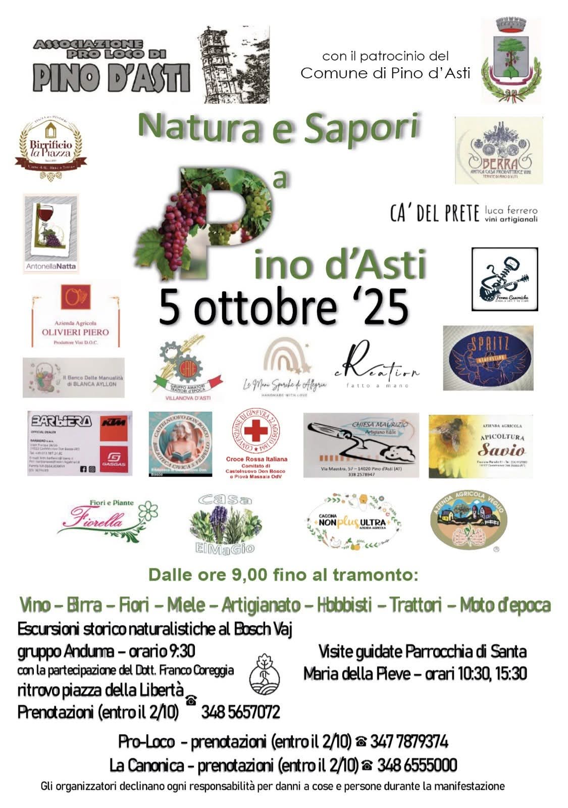 PINO D’ASTI . Domenica 5 ottobre “NATURA E SAPORI”.
