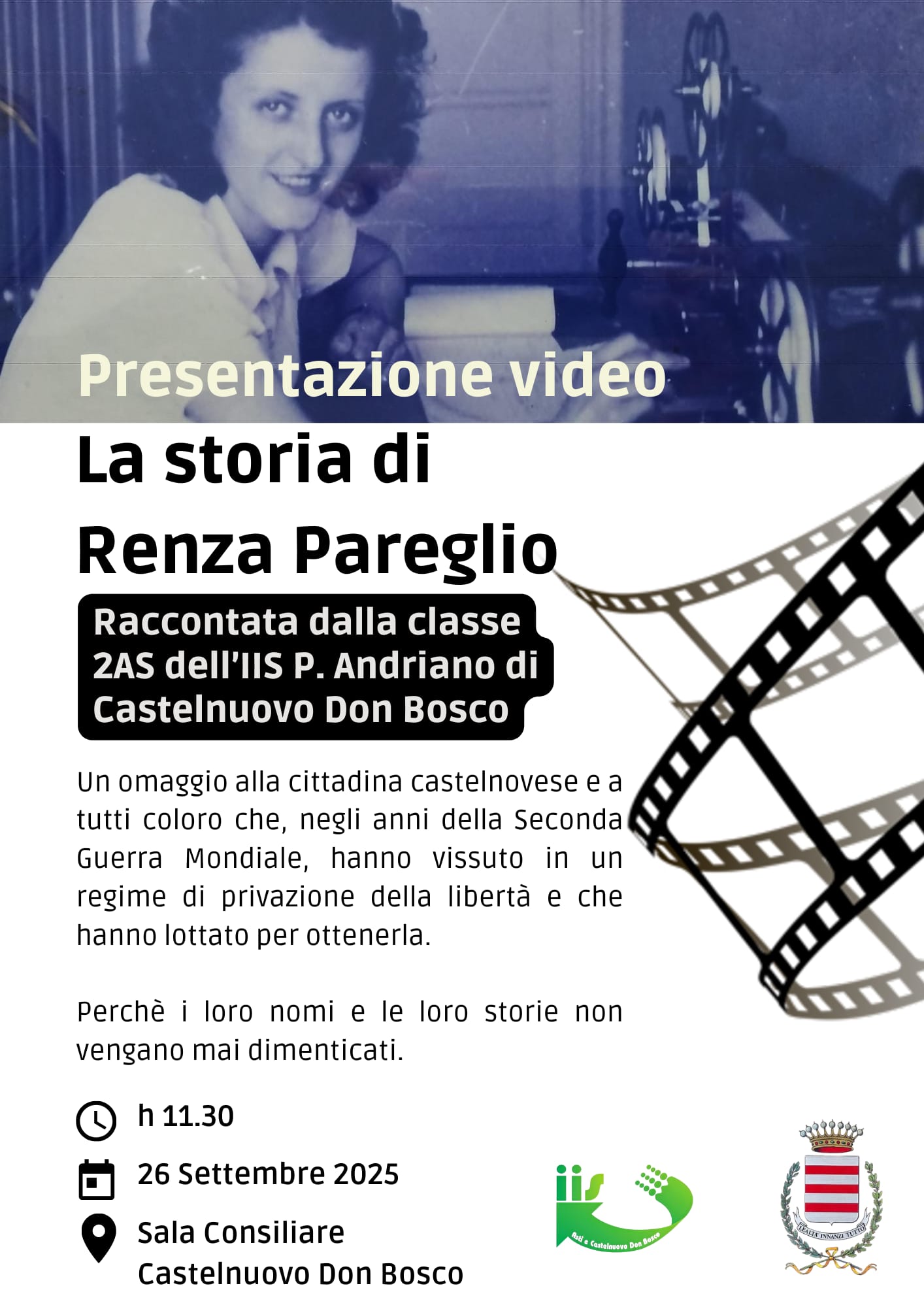 CASTELNUOVO DON BOSCO. Venerdì 26 settembre “LA STORIA DI RENZA PAREGLIO”