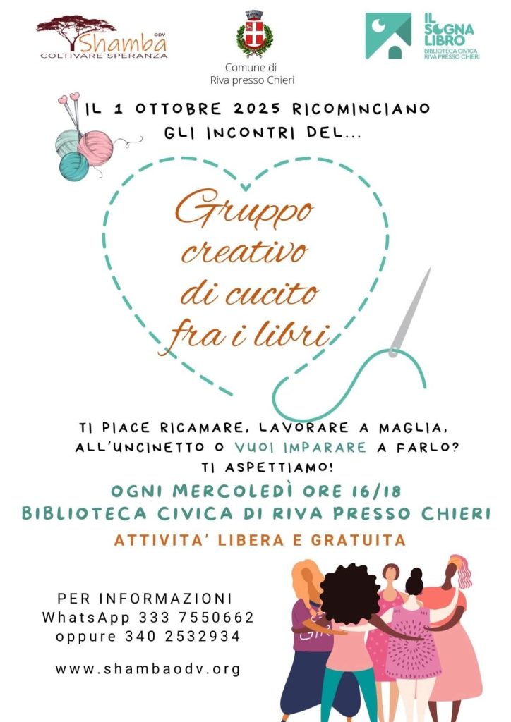 Riva presso Chieri. Incontri in Biblioteca: “Gruppo creativo di cucito fra i libri” di Redazione · 25 Settembre 2025 Visto da: 124