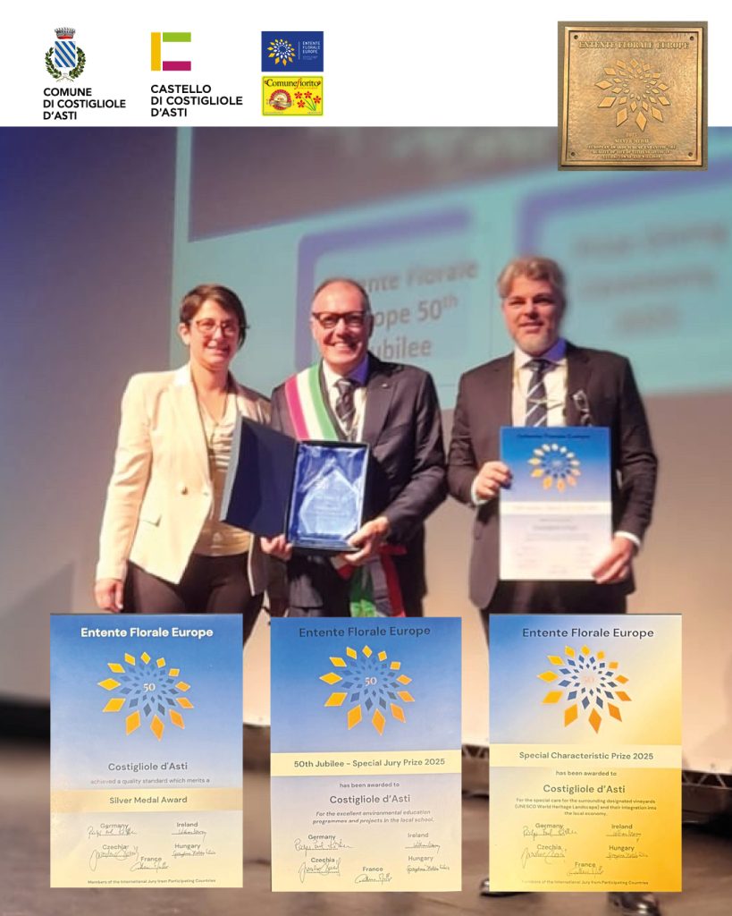 Costigliole ha avuto l’onore di rappresentare l’Italia in Slovenia in occasione del 50° anniversario di Entente Florale Europe: competizione internazionale con decine di candidati, confermando la capacità di valorizzare il verde pubblico e la qualità della vita. Il comune costigliolese è stato presentato dal sindaco sloveno, davanti a comunità provenienti da tutta Europa. Un momento importante per far conoscere Costigliole e il territorio nel contesto internazionale della sostenibilità, del verde del decoro urbano e della qualità della vita. Il comune, oltre alla Medaglia d’Argento, ha anche ricevuto 2 importanti premi speciali: 1° posto sul programma educazione ambientale scolastica, per l’impegno nella formazione dei giovani alla cura del verde e premio speciale Attrazione per il paesaggio vitivinicolo e la sua integrazione nell’economia locale. Alla cerimonia, il sindaco Enrico Cavallero, accompagnato dall’assessore all’agricoltura e cultura Chiara Cirio e dal consigliere Fabio Pizzo, ha espresso grande soddisfazione per un riconoscimento che premia l’impegno dell’amministrazione e di tutta la comunità. Il comune si era già distinto per l’attenzione alla cura e valorizzazione del proprio patrimonio paesaggistico tra i comuni premiati al Meeting nazionale dei Comuni fioriti, organizzato da Asproflor e che ha avuto come cornice la pittoresca località di Sovarazene, sulle Dolomiti bellunesi. Costigliole ha ottenuto un Attestato di Gran Merito: un riconoscimento che ha premiato l’impegno verso la sostenibilità e la cura del territorio. L’evento ha celebrato l’impegno delle comunità nella cura e nella valorizzazione del verde pubblico, con particolare attenzione ai progetti didattici nelle scuole, alle attività inclusive nelle città e allo sviluppo del turismo sostenibile dei borghi. Il sindaco ha commentato: “Il nostro impegno nel concorso sottolinea la volontà di migliorare costantemente la qualità della vita dei residenti e di promuovere un ambiente più sano e accogliente”. Il percorso è stato un impegno collettivo che ha visto la partecipazione attiva di dipendenti comunali, istituti scolastici, associazioni e cittadini, tutti uniti per presentare al meglio il proprio territorio alla giuria europea. A luglio l’amministrazione comunale aveva ospitato la giuria, composta da esperti internazionali provenienti da Irlanda, Ungheria, Repubblica Ceca e Germania e impegnata in una visita in paese che ha avuto come obiettivo quello di valutare Costigliole in base a criteri che includono lo sviluppo e la manutenzione di paesaggi, parchi e spazi verdi. Il sindaco ha sottolineato:”In quell’occasione abbiamo vissuto una giornata davvero molto intensa, arrivata al termine di un lungo impegno durato mesi, da parte di tutto il gruppo di lavoro istituito dall’amministrazione comunale e composto da assessori e consiglieri con i tecnici dell’associazione “Comuni fioriti”. E’ stato necessario mettere in campo le buone azioni e l’operatività di tutto il sistema-paese” . Il primo cittadino ha ringraziato tutti coloro che a vario titolo hanno dato la loro disponibilità e contributo per presentare al meglio il paese alla delegazione giudicatrice.