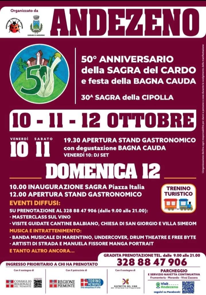 ANDEZENO. Dal 10 al 12 ottobre “Sagra del Cardo e festa della Bagna Cauda”