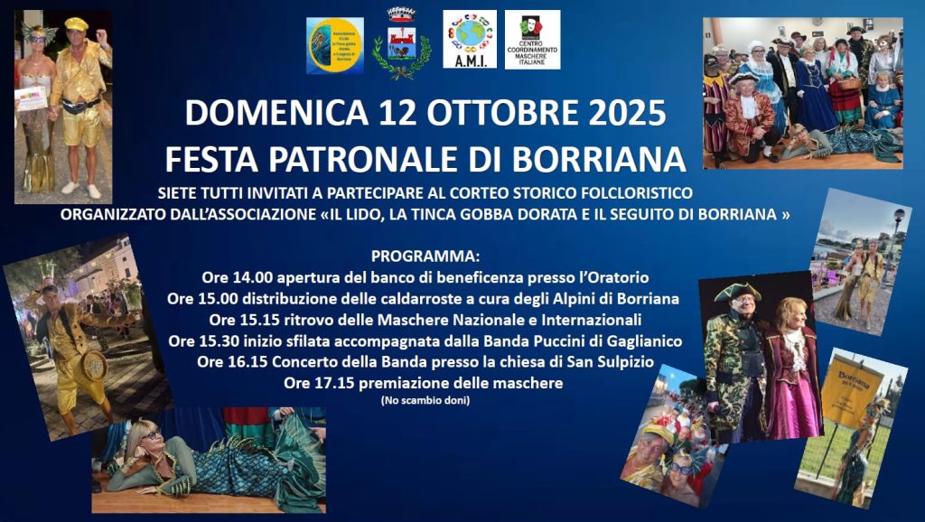 BORRIANA. Domenica 12 ottobre “Festa patronale e Corteo Storico”