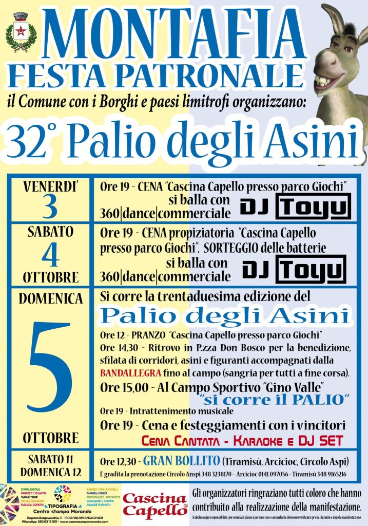 MONTAFIA. Dal 3 al 5 ottobre FESTA PATRONALE e Palio degli ASINI.