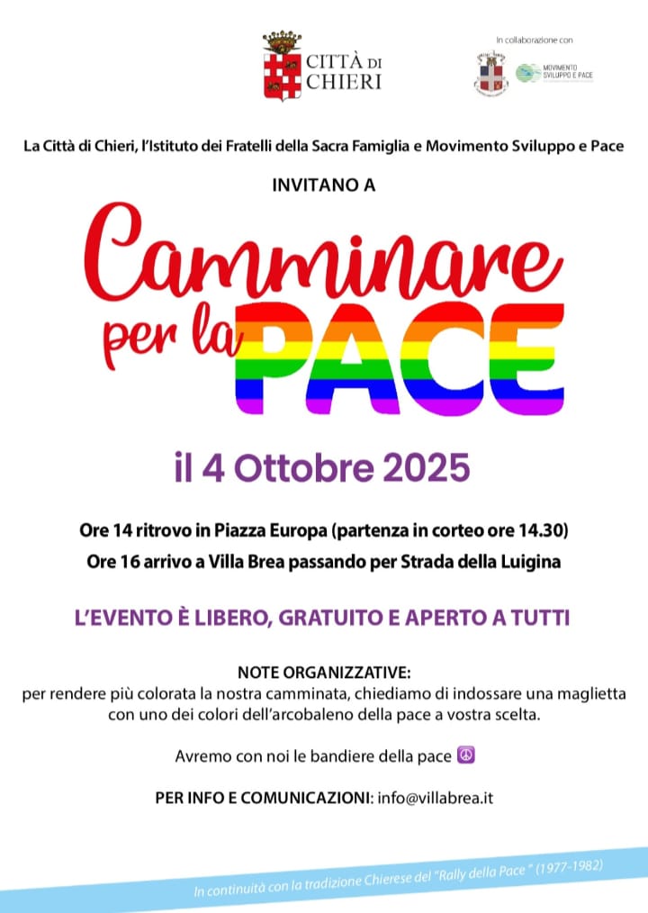 CHIERI. Sabato 4 ottobre “CAMMINARE PER LA PACE”.