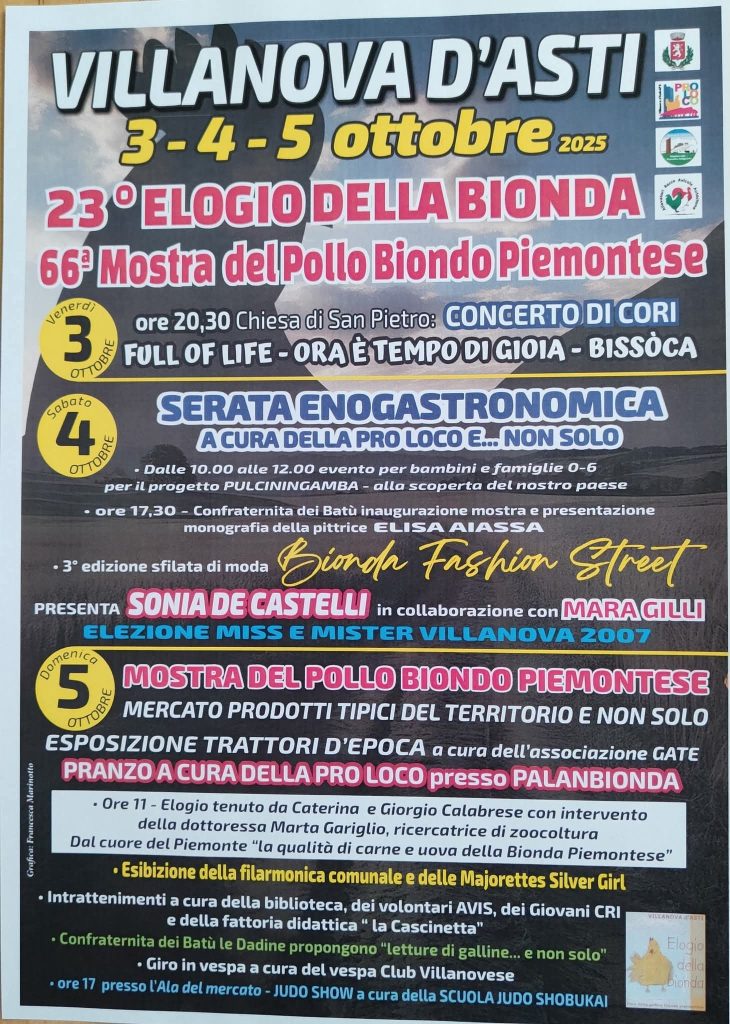 VILLANOVA D’ASTI. Dal 3 al 5 ottobre “ELOGIO DELLA BIONDA”.