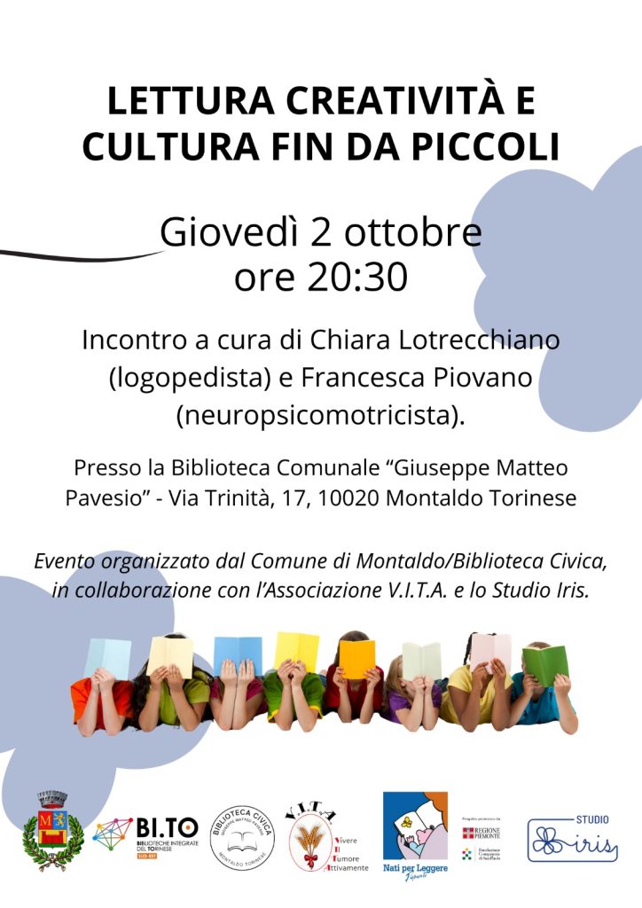 “Lettura, creatività e cultura fin da piccoli” è il tema del primo appuntamento con gli incontri della Biblioteca Civica “Giuseppe Matteo Pavesio” di Montaldo Torinese con cui si inaugura la stagione 2025/2026. L’incontro si terrà giovedì 2 ottobre alle 20,30 nella Sala Conferenze del municipio di Montaldo. Condurranno l’incontro due giovani esperte: le dottoresse Francesca Piovano, neuropsicomotricista dell’età evolutiva, e Chiara Lotrecchiano, logopedista. I libri, fin dai primi mesi di vita, possono essere un ottimo ausilio per i genitori, i familiari, in particolare i nonni che spesso suppliscono nella vita quotidiana della famiglia, e tutte le persone che si prendono cura dei piccoli, insegnanti e educatori. Non solo accompagnano il percorso evolutivo e lo stimolano senza forzature improprie, ma sono anche presidi importanti per il gioco e la relazione. Consigli sulla tipologia e sull’uso sono dunque preziosissimi! L’incontro sarà interattivo e l’iniziativa si colloca nel quadro delle proposte di “Nati per leggere”, proposto dal sistema bibliotecario BI.TO. – Biblioteche Integrate del Torinese a cui la biblioteca montaldese fa parte. Dal mese di settembre, la Biblioteca Civica “Giuseppe Matteo Pavesio” è aperta ogni settimana il mercoledì dalle 15 alle 18 e il sabato dalle 9,30 alle 12,30. Per informazioni e iscrizioni: biblioteca@comune.montaldotorinese.to.it.