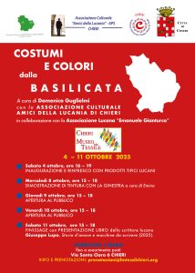 Dal 4 all’11 ottobre 2025. Manifestazione a cura di Domenico Guglielmi con l’Associazione Culturale Amici della Lucania di Chieri In collaborazione con la Associazione Lucana “Emanuele Gianturco” di Settimo Torinese