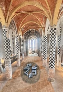 More than Kids nella Chiesa di San Domenico di Alba, curata da Nicolas Ballario e Arturo Galansino, presenterà una selezione di opere significative e inedite, tra cui la grande installazione scultorea Nel silenzio (2025, vetroresina, cemento e terra 8x5m) che sviluppa il tema dei bassorilievi già esposti alla Fondazione Ferrero e a Palazzo Reale.