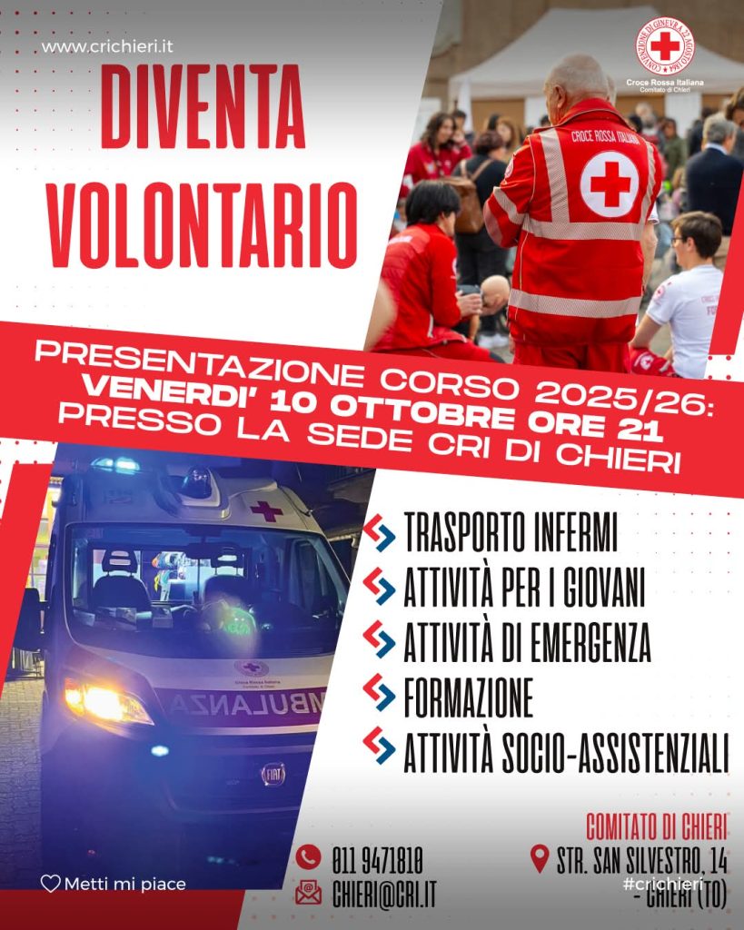 Chieri. La Croce Rossa presenta i corsi per volontari 2025-2026 di Redazione · 7 Ottobre 2025 Visto da: 158