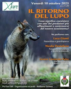 L’associazione baldisserese Xfare, presso il Centro Comunale Paluc di Strada Superga 79 a Baldissero, propone per venerdì 10 ottobre alle 21 una n serata dal titolo “Il ritorno del lupo”, che si propone di approfondire, come recita la didascalia, “Cosa significa coesistere con uno dei predatori più affascinanti e controversi del nostro ecosistema”.