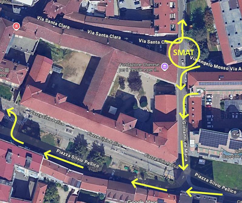 -le auto e autoambulanze in uscita da via A. Mosso (Pronto soccorso) dovranno girare a sinistra, quindi verso piazza Pellico;