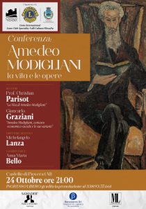 L’iniziativa, dal titolo “Amedeo Modigliani: la vita e le opere”, è organizzata dal Lions Club Specialty Valli Cultura Filosofia – Distretto 108 Ib1, presieduto da Anna Maria Bello, con il patrocinio del Comune di Alluvioni Piovera.