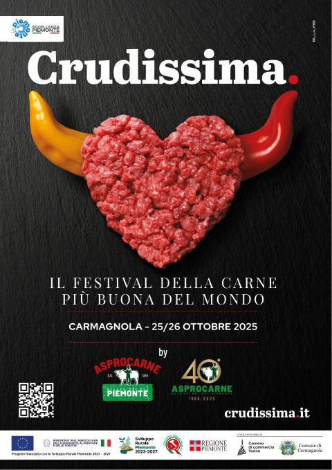 Carmagnola ospiterà il 25 e 26 ottobre “Crudissima – Il Festival della carne più buona del mondo”, grande evento promosso da Asprocarne Piemonte per celebrare i quarant’anni dell’organizzazione dei produttori di carni bovine.Il Foro Boario di Piazza Italia diventerà per due giorni il cuore pulsante della carne di eccellenza allevata in Piemonte, con incontri, degustazioni, masterclass, showcooking e momenti di approfondimento dedicati alla filiera zootecnica e gastronomica regionale.