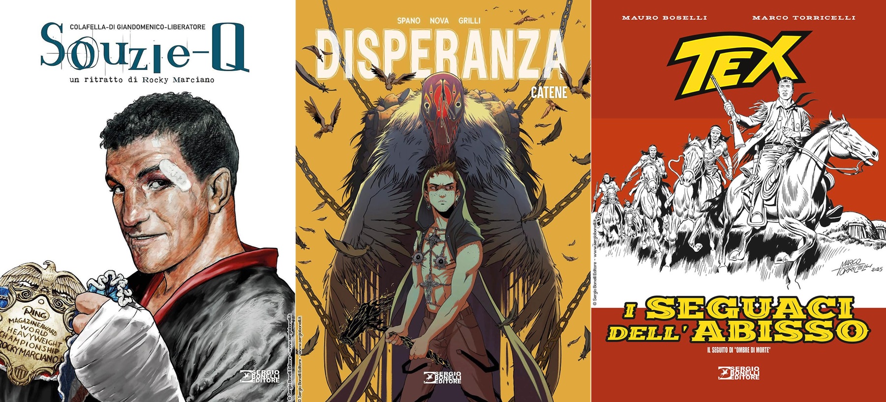 La Sergio Bonelli Editore conferma la sua presenza al PalaBonelli (in Piazza Antelminelli), dove ci saranno tantissime novità e le immancabili variant, insieme ai loro autori. Tra le novità: Souzie-Q di Carmine Di Giandomenico e Francesco Colafella, con il contributo di Tanino Liberatore; Disperanza di Samuel Spano, Nova e Matteo Grillie; Orbit Orbit, il fumetto-disco di Caparezza, disegnato da Sergio Gerasi, Riccardo Torti, Nicola Mari, Marco Nizzoli, Renato Riccio, Stefano Tamiazzo, La Came e Yi Yang, con la copertina di Matteo De Longis; Nightmare in Rome, ideato da Enrico Mutti, sceneggiato da Rita Porretto e Silvia Mericone, illustrato da Luca Casalanguida con le illustrazioni dei personaggi a cura di Tanino Liberatore; il seguito di Ombre di morte (presentato nel 2023), I seguaci dell’abisso, realizzato da Mauro Boselli e Marco Torricelli; Gatti neri Cani bianchi di Vanna Vinci e il nuovo Nathan Never/ASI (Agenzia Spaziale Italiana), I naufraghi della Luna, scritto da Bepi Vigna per i disegni di Sergio Giardo e i colori di Romina Denti.