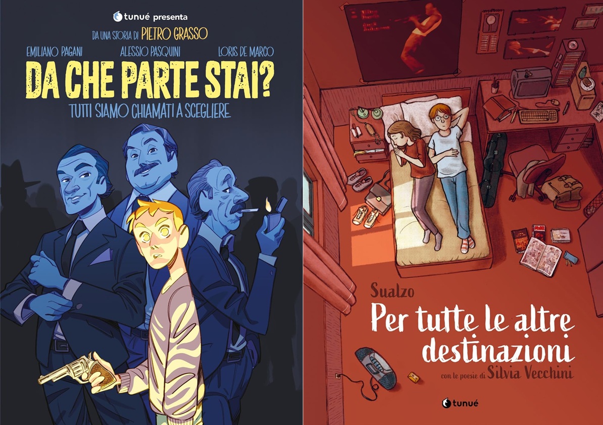 Allo stand Tunué Barbara Canepa, con il secondo volume della serie GreenWood e la nuova edizione di Sky Doll, il mitico Pera Toons, Giulio Rincione, con il terzo volume della saga di Dirt, Boban Pesov con C’era una volta l’est, e Pietro Grasso, ex magistrato e procuratore antimafia, per la presentazione di Da che parte stai? di Alessio Pasquini, Emiliano Pagani e Loris De Marco. Inoltre Sualzo con Per tutte le altre destinazioni, Giovanni De Feo e Sara Forbicini con La voce dei luoghi.