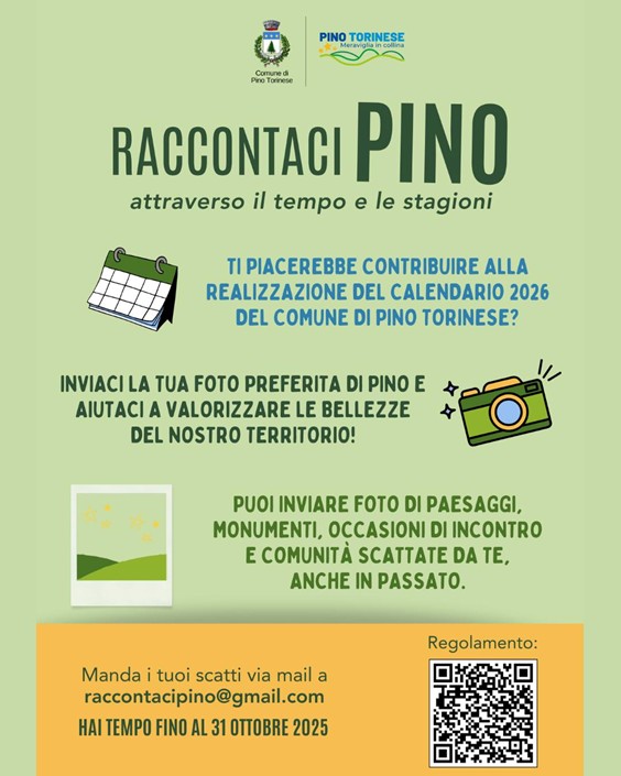 Per maggiori dettagli, leggi il regolamento: https://comune.pinotorinese.to.it/…/raccontaci-pino…/