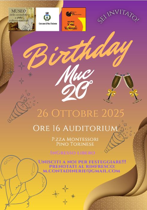 L’appuntamento è per domenica 26 ottobre alle ore 16 Presso l’Auditorium di Pino Torinese, il Museo delle Contadinerie e della Cultura Materiale festeggerà 20 anni di storia.
