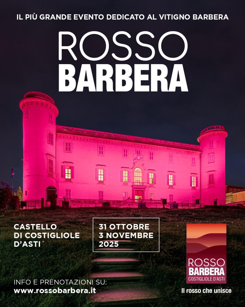Dal 31 ottobre al 3 novembre, il castello si trasformerà nella capitale mondiale della Barbera, ospitando la 6^ edizione della manifestazione dedicata al vitigno simbolo del Piemonte. Promosso dal Comune di Costigliole con il patrocinio del Ministero dell’Agricoltura, della Sovranità Alimentare e delle Foreste e della Regione Piemonte, in collaborazione con il Consorzio Barbera d’Asti e Vini del Monferrato e con l’Associazione Produttori “Noi di Costigliole”, l’evento proporrà 400 vini di 200 cantine in degustazione, raccontati dai sommelier AIS Piemonte – Delegazione di Asti.