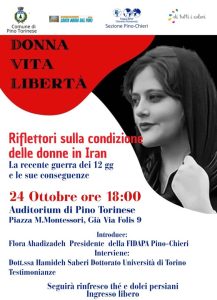 Pino Torinese. Venerdì 24 “Donna, vita, libertà”: la situazione femminile nell’Iran di oggi
