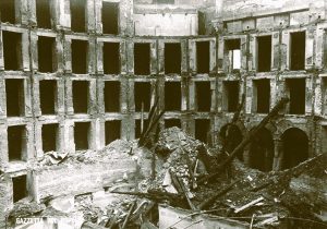 Le macerie all’interno del Teatro di Torino dopo il bombardamento del dicembre 1942 (immagine dalla Gazzetta del Popolo – Archivio Storico del Comune di Torino)