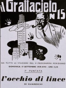 “Il grattacielo n. 15”: racconto umoristico a puntate scritto da Giovanni Guareschi, grande umorista e scrittore che fu poi il “padre” di Don Camillo e Peppone. Guareschi collaborò come autore con l’Eiar dal 1938 al 1942, quando era caporedattore del Bertoldo, periodico umoristico e satirico.