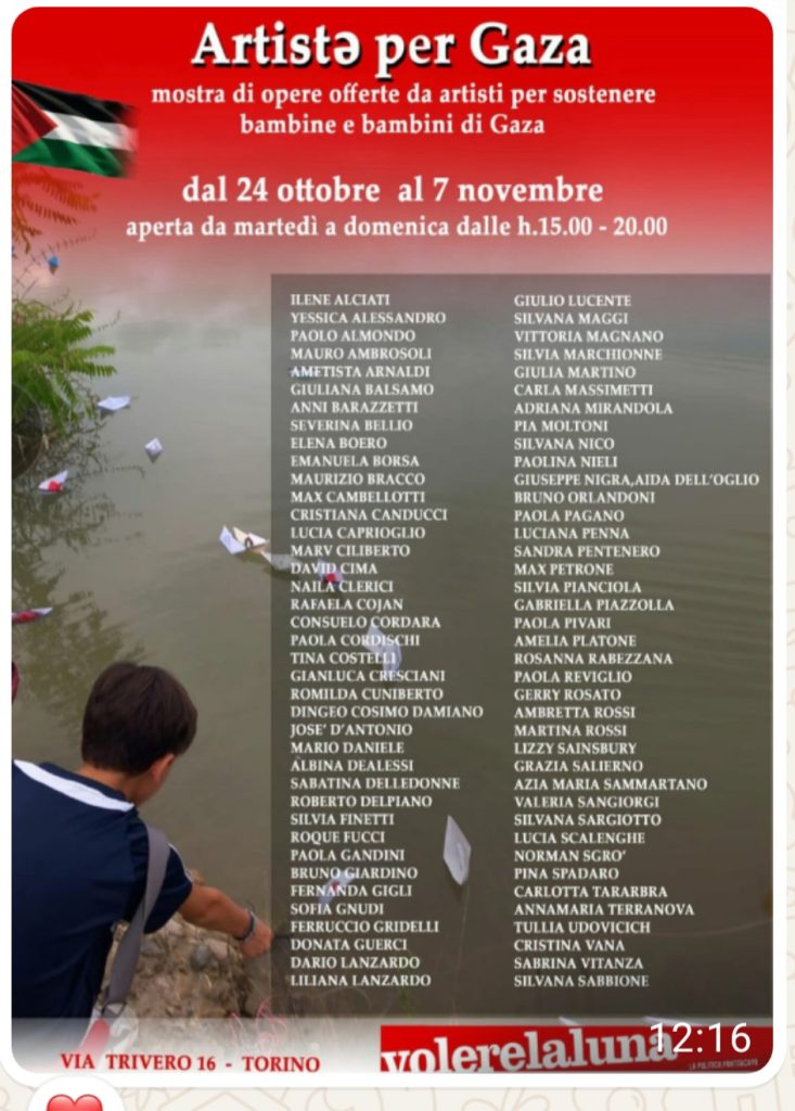 TORINO. VOLERELALUNA. ARTISTI PER GAZA