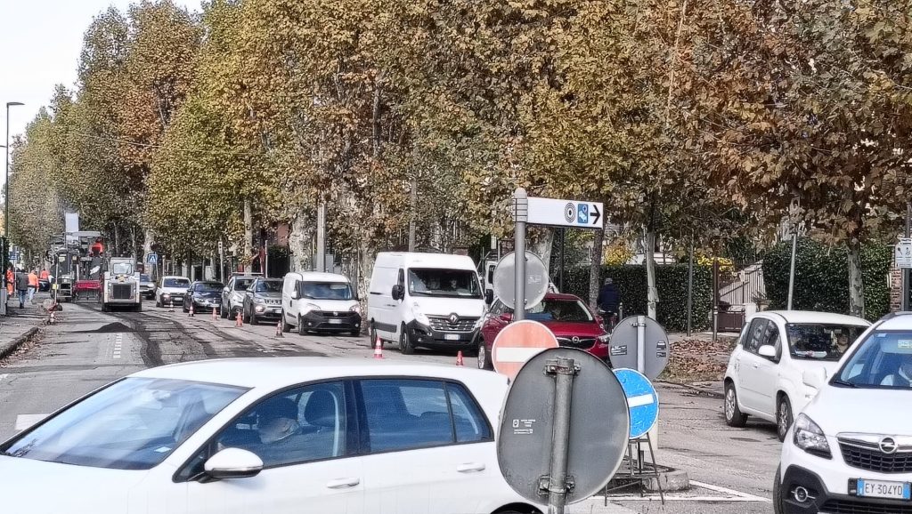 Chieri. Viale Diaz, si asfalta. Caos traffico con lunghe code