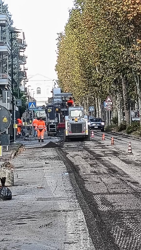 A Chieri, iniziati i lavori di asfaltatura in Viale Diaz, da anni terra di cantiere per gli innumerevoli scavi legati all’acquedotto e alla fibra.