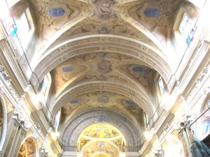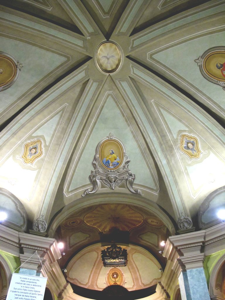 Il pittore torinese Gabriele Ferrero (1836-1906) era specializzato nella pittura decorativa di tipo architettonico e prospettico. La insegnò per molti anni presso l’Accademia Albertina e la realizzò in un varie chiese,  passando con disinvoltura da uno stile all’altro.