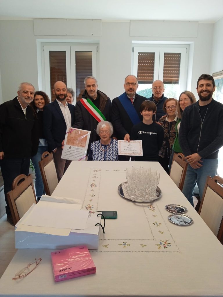 A salutarla e a consegnare la pergamena ufficiale è intervenuto il presidente della Provincia Maurizio Rasero, accompagnato da amministratori, famigliari e amici della centenaria.