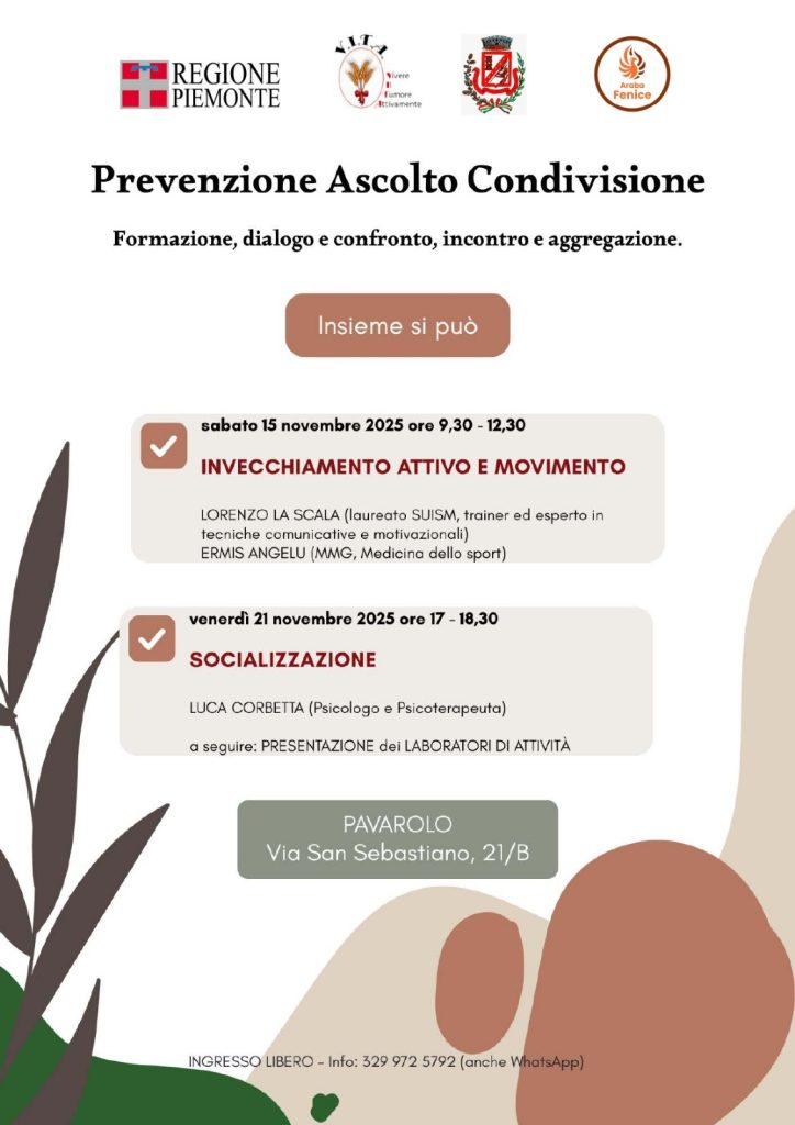 Pavarolo. Parte il progetto “Formazione Ascolto Condivisione. Formazione, dialogo e confronto, incontro e aggregazione”.