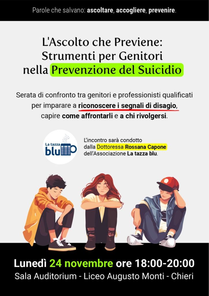 Chieri. All’auditorium del “Monti” serata di confronto sulla prevenzione del suicidio di Redazione · 14 Novembre 2025 Visto da: 134