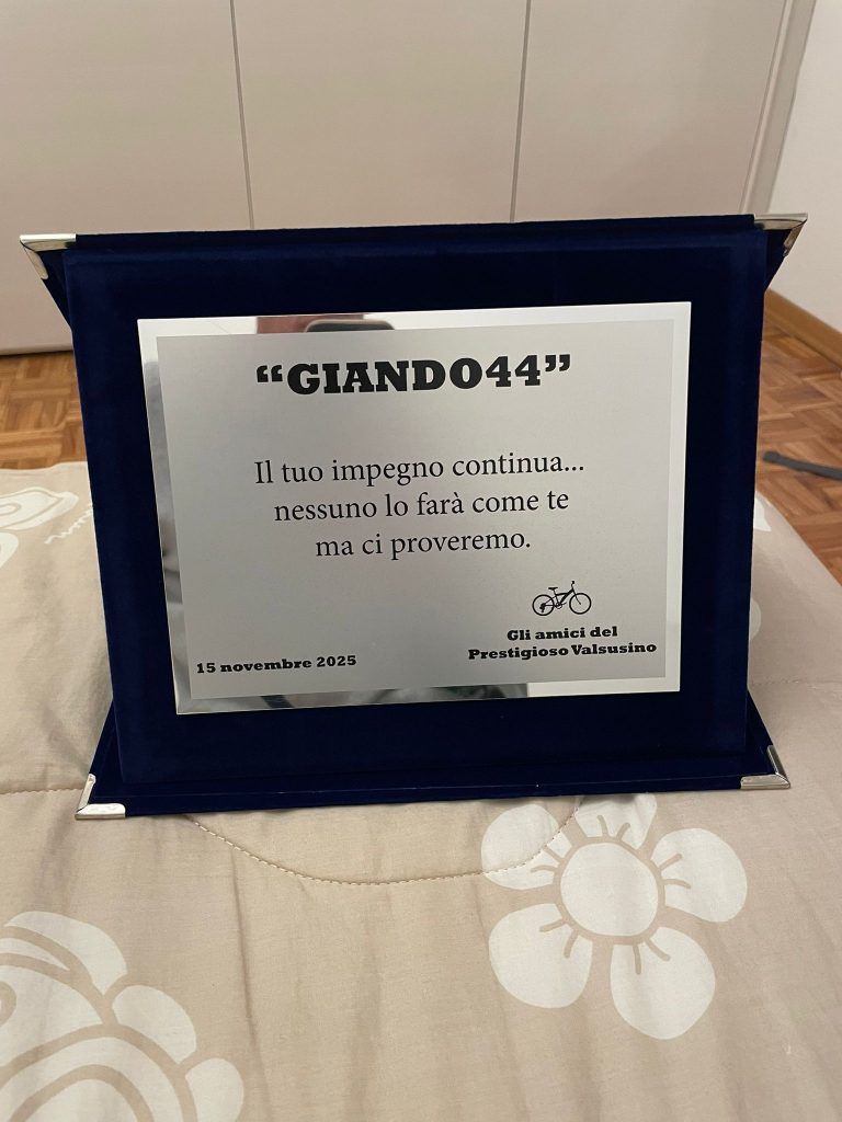 Oggi pomeriggio a Druento si è svolta la premiazione del “Prestigioso Valsusino 2025”, 30 salite più o meno famose, ma tutte molto impegnative, da affrontare in bicicletta, in Valsusa e con qualche sconfinamento nelle zone circostanti.Un centinaio di ciclisti di tutte le età si sono ritrovati oggi per ritirare l’ambita maglia e festeggiare insieme.Nell’occasione è stato anche ricordato l’amico ciclista Giandonato Bava, recentemente mancato in un incidente ciclistico, al cui figlio Andrea è stata consegnata una targa commemorativa.Toccanti le parole del figlio Andrea. “Sono convinto che le amicizie con cui si condividono le passioni, ma soprattutto le fatiche, creino legami speciali e profondi; spero quindi che ricorderete a lungo Giando44, e vi ringrazio per essere stati suoi amici e compagni di avventure. Grazie a tutti.”