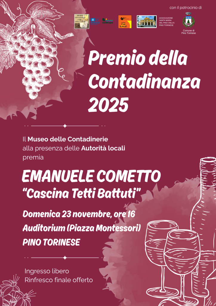 Domenica 23 Novembre 2025 alle ore 16 presso l’Auditorium di Pino Torinese torna il Premio della Contadinanza.