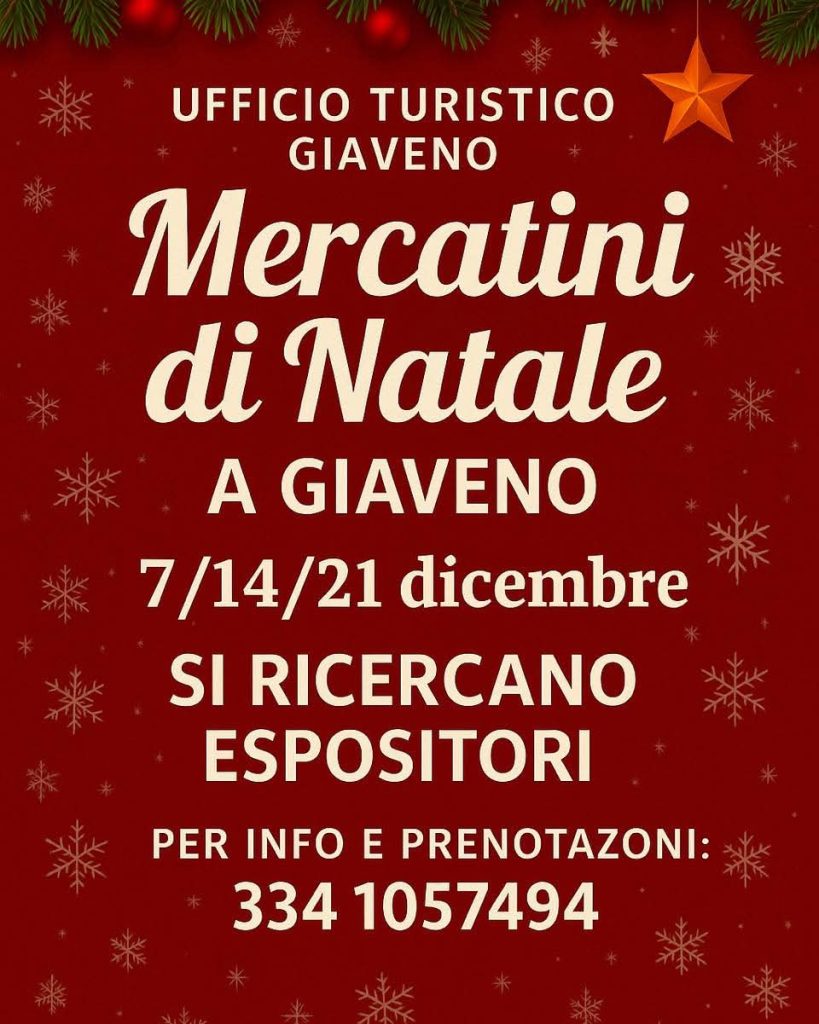 GIAVENO. Domeniche 7 – 14 – 21 dicembre “MERCATINI DI NATALE”.