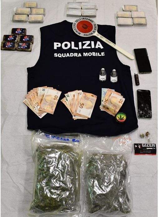 L’operazione di Polizia Giudiziaria consentiva di porre in sequestro oltre 5 chilogrammi di sostanze stupefacenti del tipo metanfetamina (20 dosi), hashish e marijuana (3.000 dosi) e cocaina rosa (cocaina “tagliata” con altra sostanza stupefacente del tipo ketamina, consistente in almeno 100 dosi), destinate alle piazze di spaccio cittadine, con un giro d’affari stimato in circa 70.000 €.