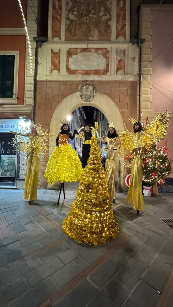 ◦ 7 DICEMBRE dalle 16,30 alle 18,30 “Preziosa”: elegante sfilata luminosa color oro lungo le vie del centro: preziose figure su trampoli in abiti dorati, illuminati di stelle, con sottofondo musicale a tema natalizio;
