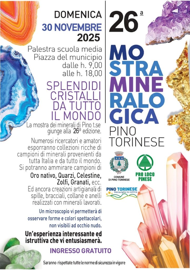 Il 30 novembre la 26.esima MOSTRA MINERALOGICA nel Comune di Pino Torinese!