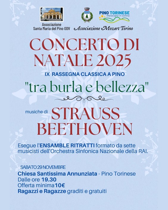 Pino Torinese. Sabato 29 novembre Sette musicisti dell’Orchestra Sinfonica Nazionale della Rai per “il Concerto di Natale”