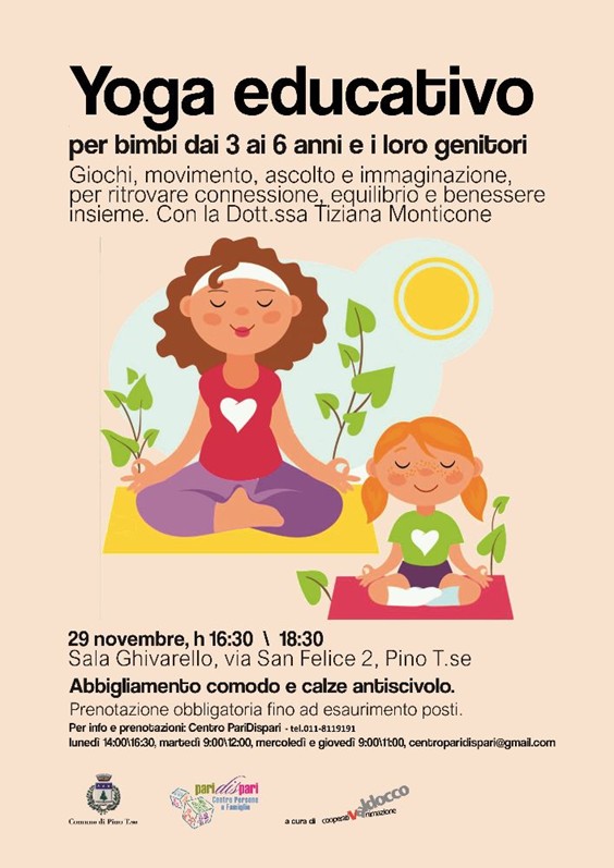 Pino Torinese. Sabato 29 novembre “Yoga educativo” per bimbi 3/6 anni e i loro genitori al Centro PariDispari