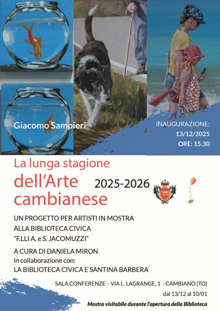 La mostra “Opere scelte” si inaugurerà il 13 dicembre alle ore 15,30 presso la Sala Conferenze della Biblioteca Civica cambianese in via L. Lagrange. 1