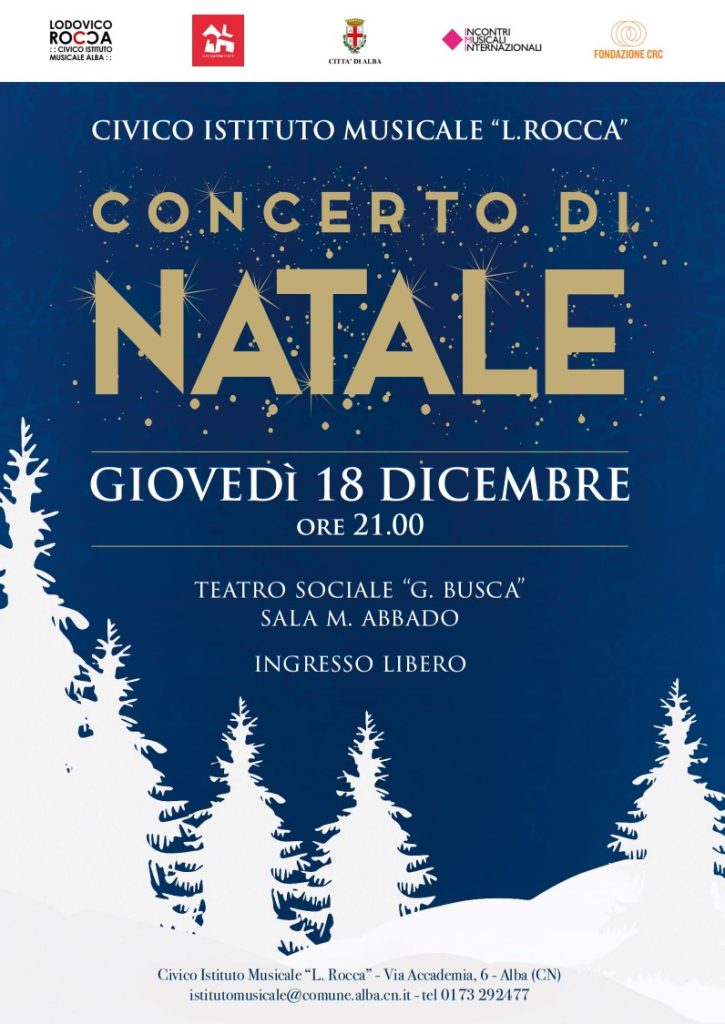 Alba: Concerto di Natale del Civico Istituto Musicale “Lodovico Rocca”, giovedì 18 dicembre