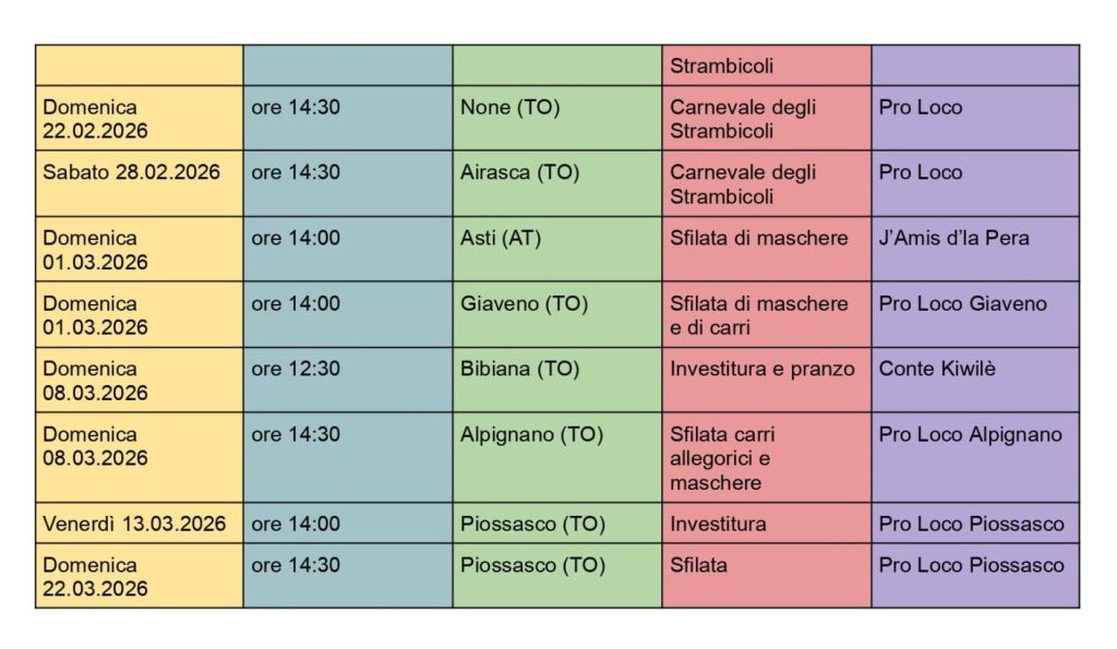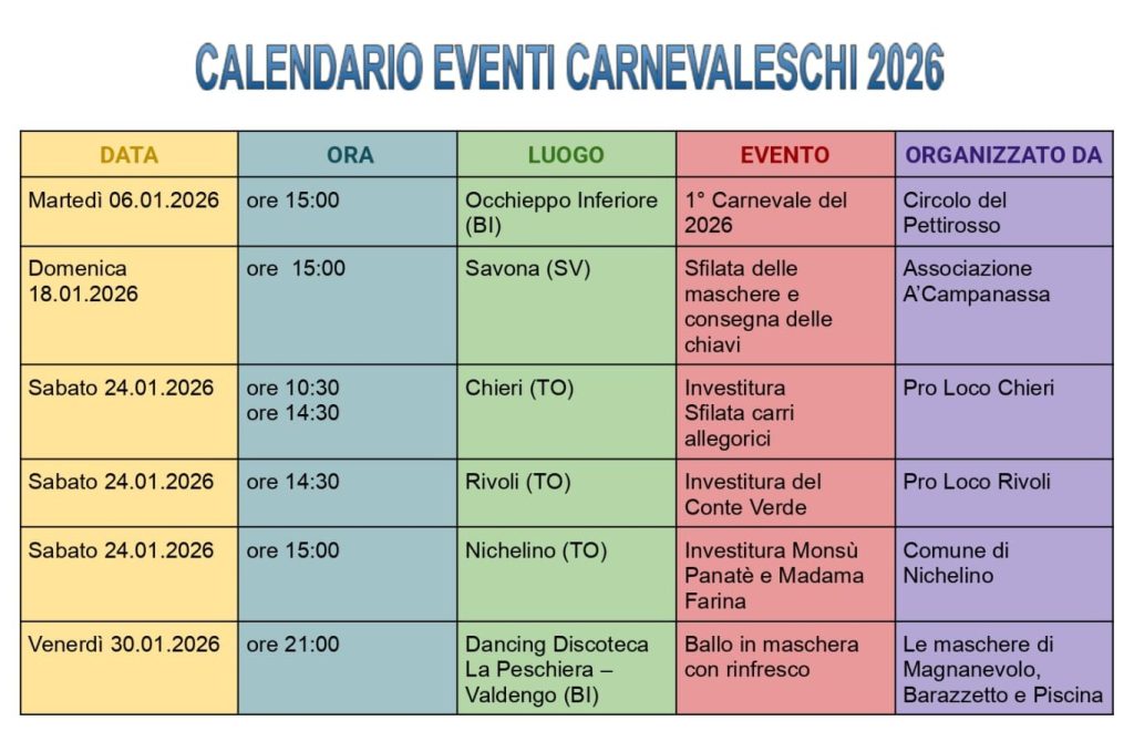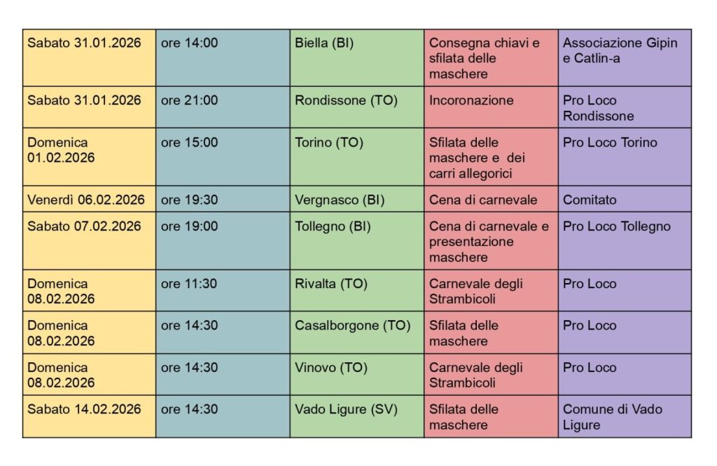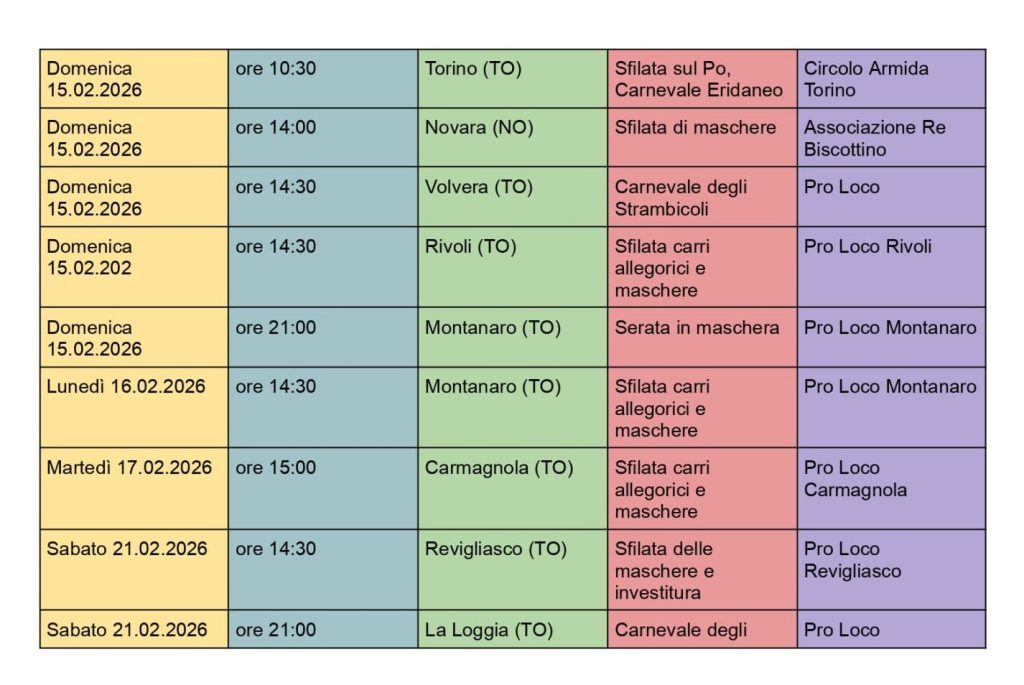 Sagre – Feste – Manifestazioni a Savigliano, Formigliana, Bosconero, Occhieppo Inferiore e il calendario delle manifestazioni carnevalesche dei 2026.