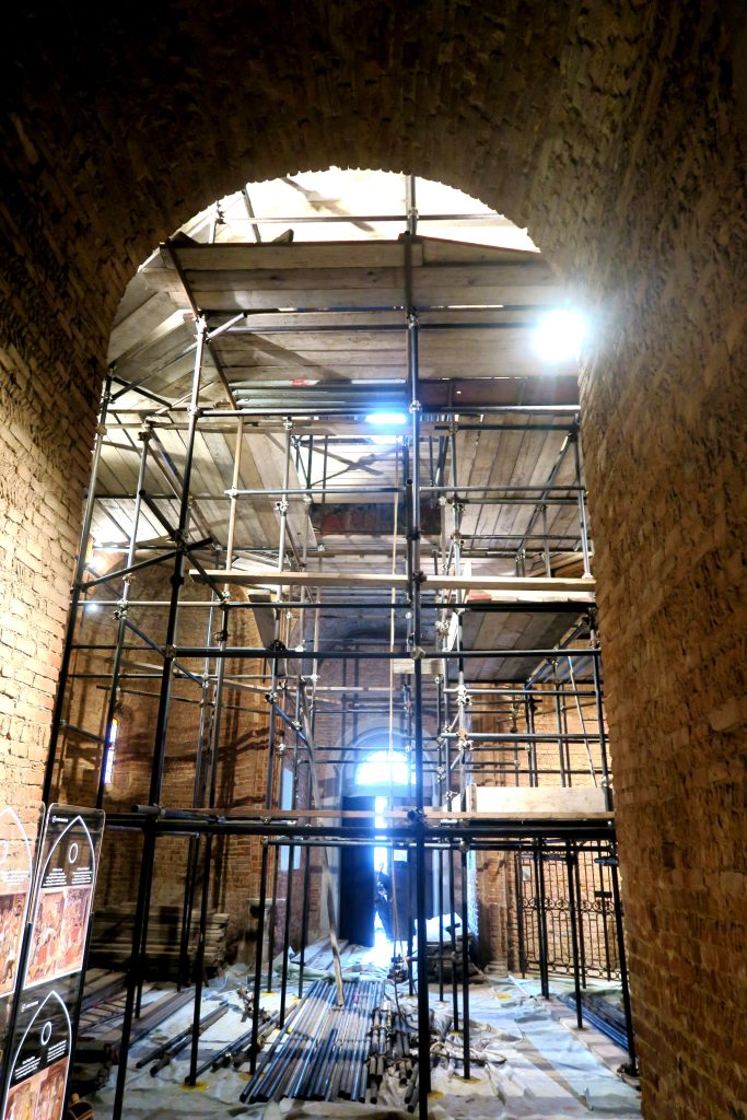 Nel Duomo di Chieri, terminati i restauri degli affreschi della cappella del Corpus Domini, le impalcature sono state prontamente smontale.