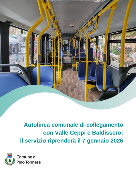 Riprenderà il 7 gennaio 2026 il servizio comunale di collegamento tramite navetta tra Pino Torinese, Valle Ceppi e Baldissero.