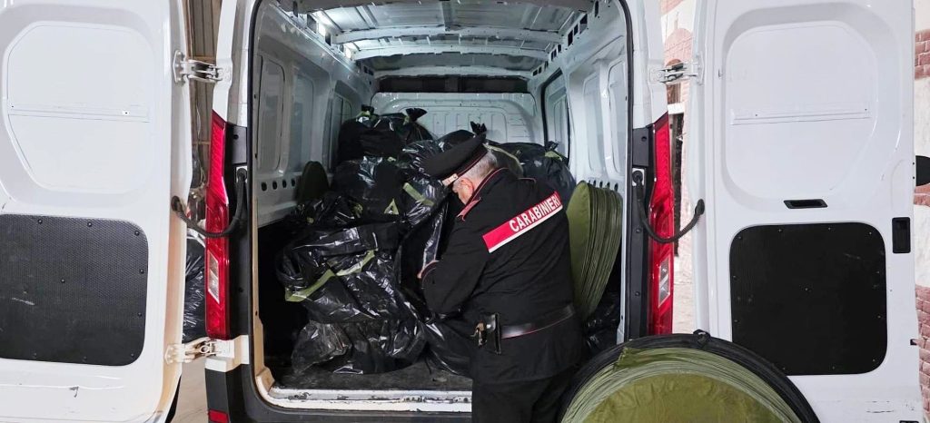 Il colpo di scena finale arriva con l’ispezione del furgone, sul quale i Carabinieri rinvengono quaranta enormi sacchi di foglie di marijuana del peso complessivo di oltre 400 chilogrammi.